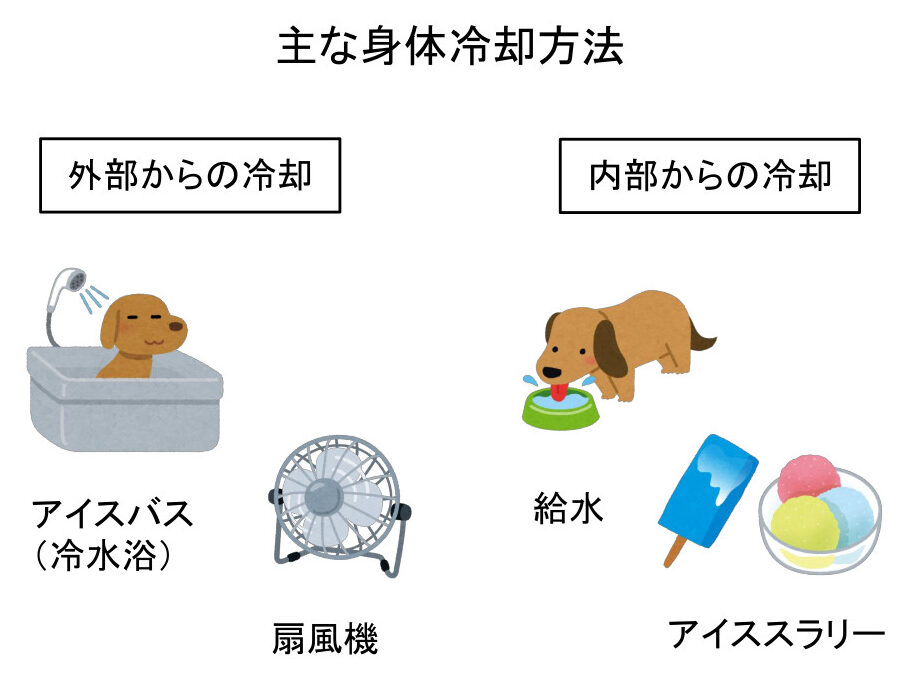 愛犬を冷やす際の適切な方法には、以下のような手段があります: