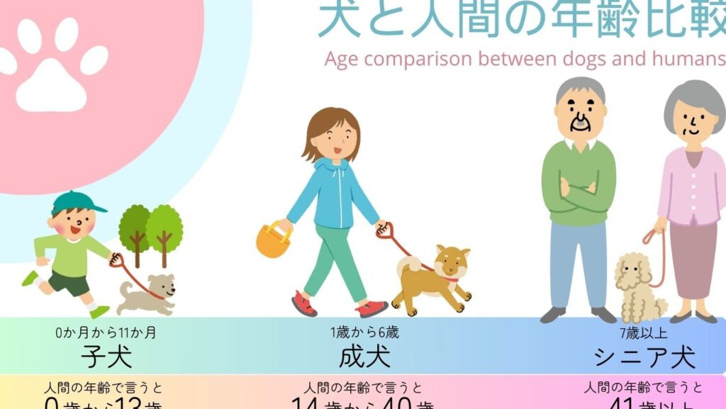 犬がシニア犬と見なされる年齢は、犬種や個体差により異なる。一般的には、犬が7歳から老犬とされる場合が多い。しかし、大型犬では早く老化が進むので、5歳からシニアと見なされることもある。