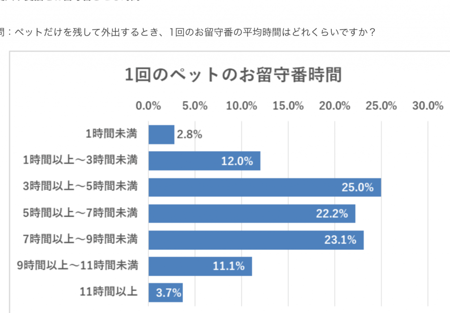 - 大型犬については、最大で8時間まで留守番できるが、運動や刺激が必要。