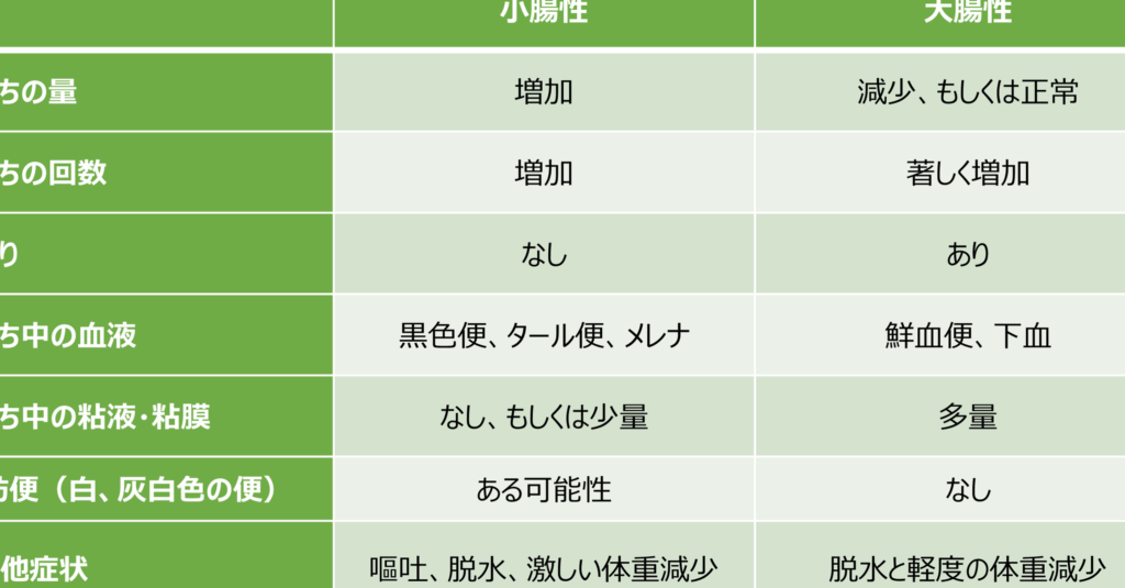 - 獣医の診察:重度の下痢や嘔吐の場合、早期に獣医に相談することが大切だ。適切な診断と治療プランが求められる。