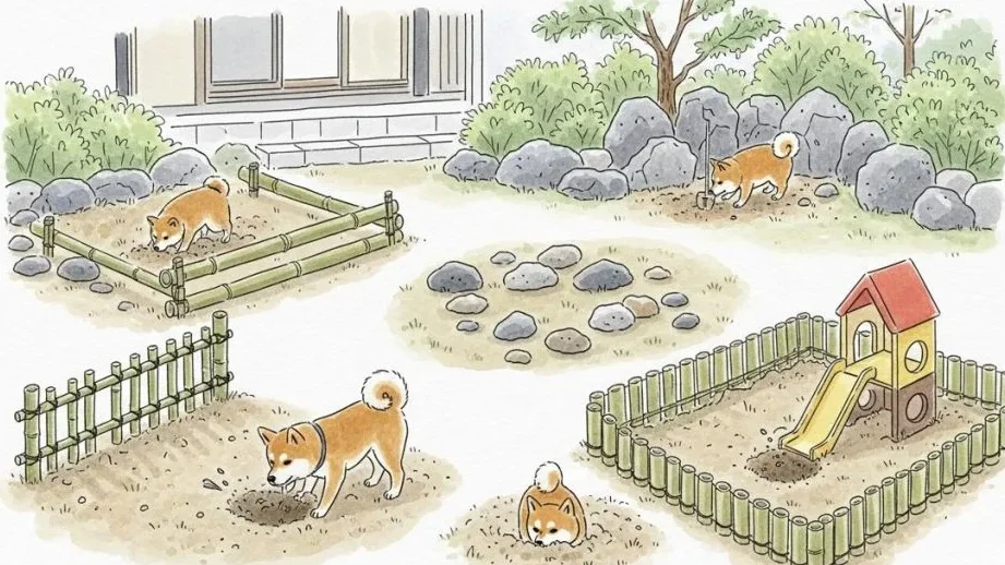 愛犬が自由に遊べる安全な場所を提供することも大切です。特定の場所で掘らせたい場合は、そのエリアを整えましょう: