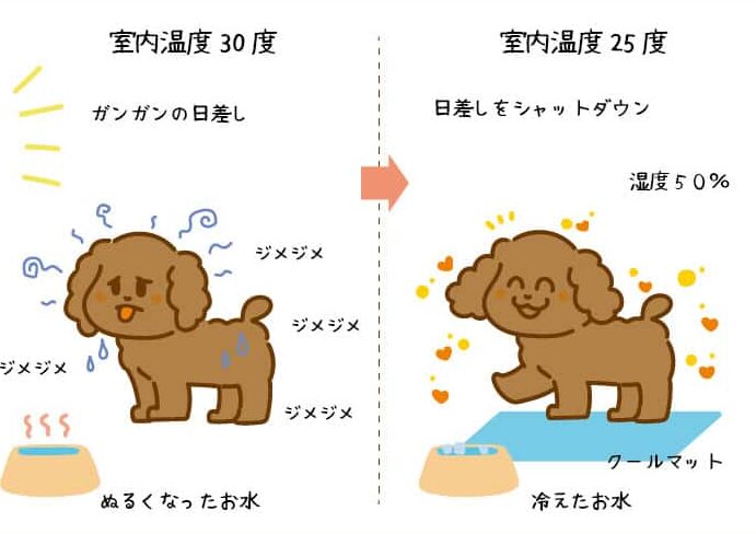 室内で愛犬を熱中症から守るためには、環境を整えることが非常に重要です。特に夏の暑い時期には、室内の温度管理や快適さを確保することで、犬が安心して過ごせる空間を提供できます。以下に具体的な予防法をご紹介します。