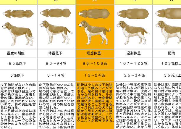 犬の体重別給餌基準