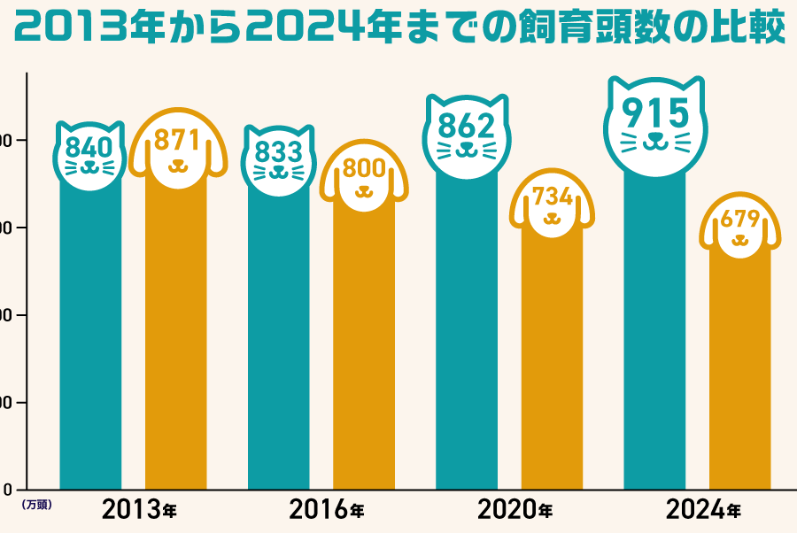 まず、日本におけるペットとしての猫と犬の人気度を見てみましょう。近年、猫が急速に人気を集めている一方で、犬も依然として多くの支持を得ています。それぞれの動物について具体的なデータを見てみます。